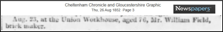 In the 1851 census Henry is living with his brother George.In the 1861 census he was resident in the Workhouse the same time as the four youngest children of his brother Wiiliam. He remained there for the rest of his life.