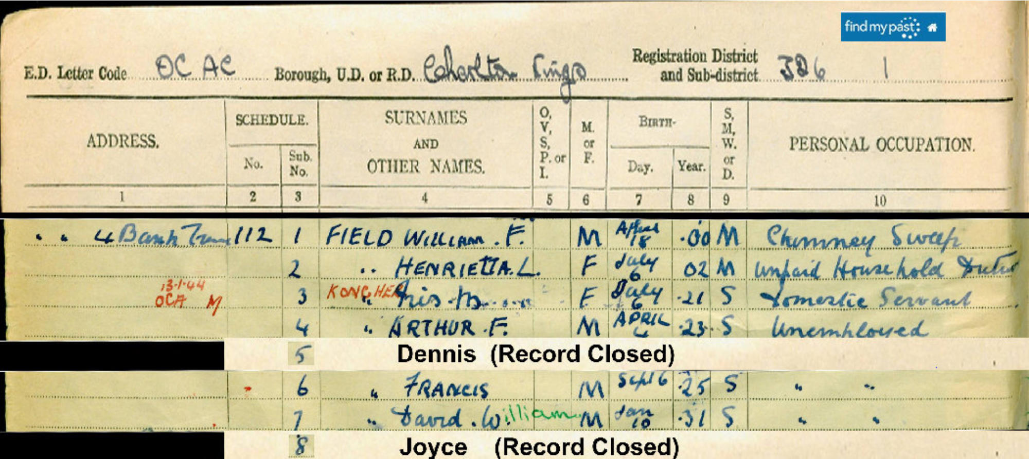 1: WILLIAM FREDERICK FIELD