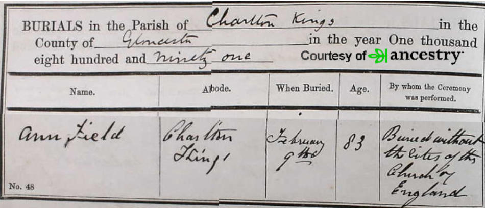 John Field. In the 1881 census Ann is living