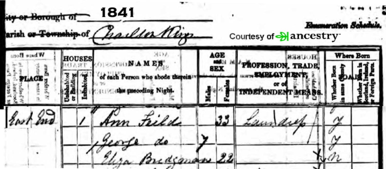Fanny Bridgman, the1841 census of John
